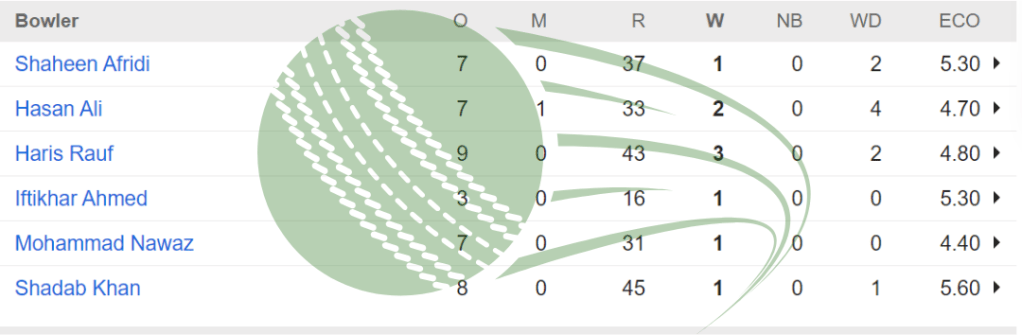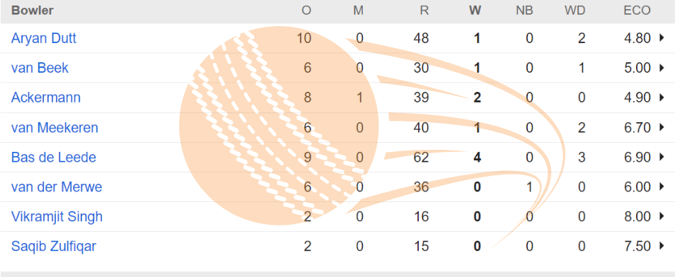 Shadab Khan and Mohammad Nawaz then formed a useful partnership to help Pakistan reach a respectable total. Shaheen Afridi and Haris Rauf contributed with the bat at the end of the innings, adding valuable runs. The lower-order batsmen added 98 runs for Pakistan, but this phase of the game was a bit scratchy for the Netherlands.